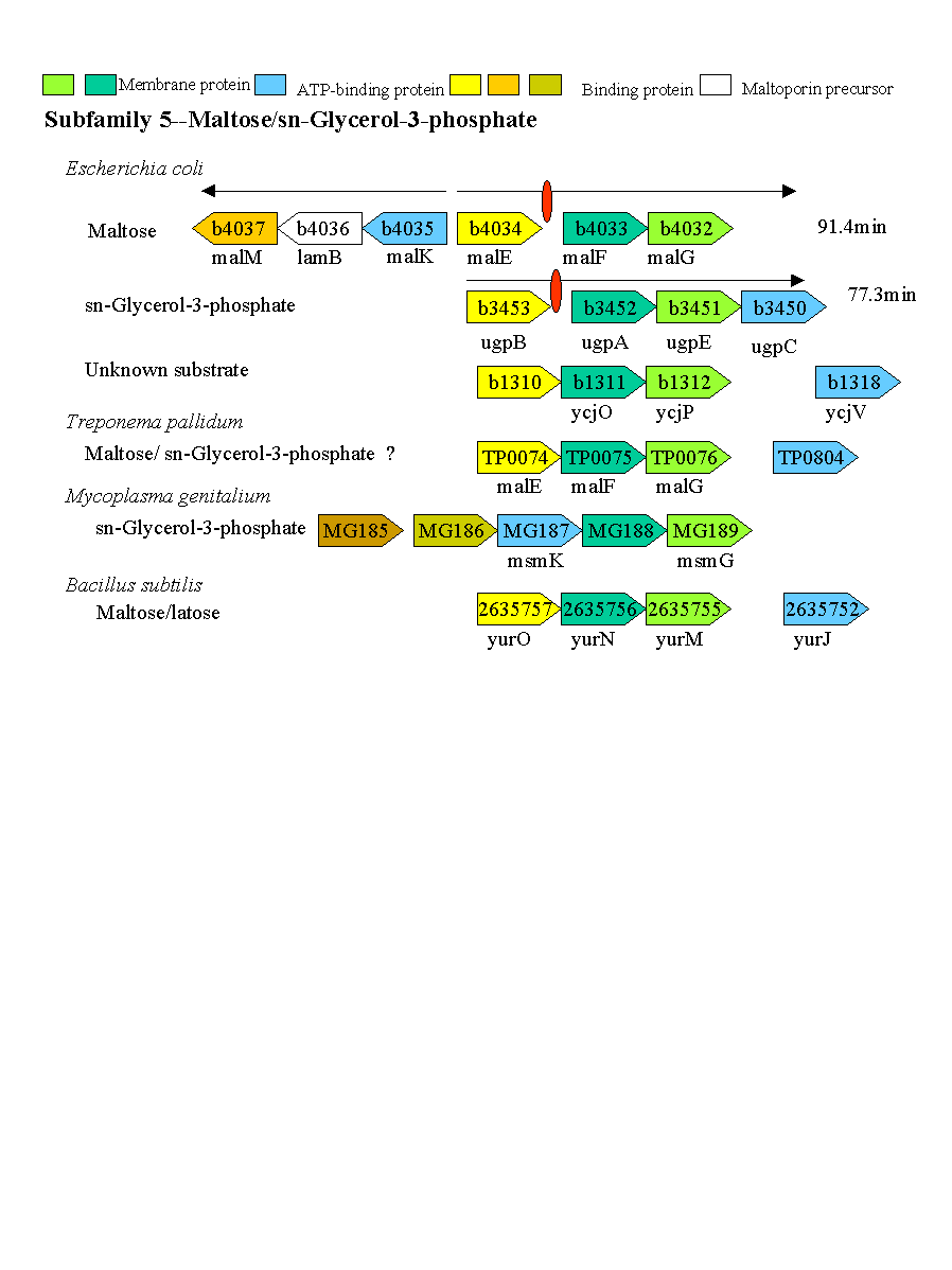The maltose system of Escherichia coli offers an unusually rich set of enzymes, transporters, and regulators as objects of study. This system is responsible for the uptake and metabolism of glucose polymers (maltodextrins), which must be a preferred class of nutrients for E. coli in both mammalian hosts and in the environment. Because the metabolism of glucose polymers must be coordinated with both the anabolic and catabolic uses of glucose and glycogen, an intricate set of regulatory mechanisms controls the expression of mal genes, the activity of the maltose transporter, and the activities of the maltose/maltodextrin catabolic enzymes. The ease of isolating many of the mal gene products has contributed greatly to the understanding of the structures and functions of several classes of proteins. Not only was the outer membrane maltoporin, LamB, or the phage lambda receptor, the first virus receptor to be isolated, but also its three-dimensional structure, together with extensive knowledge of functional sites for ligand binding as well as for phage lambda binding, has led to a relatively complete description of this sugar-specific aqueous channel. The periplasmic maltose binding protein (MBP) has been studied with respect to its role in both maltose transport and maltose taxis. Again, the combination of structural and functional information has led to a significant understanding of how this soluble receptor participates in signaling the presence of sugar to the chemosensory apparatus as well as how it participates in sugar transport. The maltose transporter belongs to the ATP binding cassette family, and although its structure is not yet known at atomic resolution, there is some insight into the structures of several functional sites, including those that are involved in interactions with MBP and recognition of substrates and ATP. A particularly astonishing discovery is the direct participation of the transporter in transcriptional control of the mal regulon. The MalT protein activates transcription at all mal promoters. A subset also requires the cyclic AMP receptor protein for transcription. The MalT protein requires maltotriose and ATP as ligands for binding to a dodecanucleotide MalT box that appears in multiple copies upstream of all mal promoters. Recent data indicate that the ATP binding cassette transporter subunit MalK can directly inhibit MalT when the transporter is inactive due to the absence of substrate. Despite this wealth of knowledge, there are still basic issues that require clarification concerning the mechanism of MalT-mediated activation, repression by the transporter, biosynthesis and assembly of the outer membrane and inner membrane transporter proteins, and interrelationships between the mal enzymes and those of glucose and glycogen metabolism.( Microbiol Mol Biol Rev 1998 Mar;62(1):204-29 Maltose/maltodextrin system of Escherichia coli : transport, metabolism, and regulation. Boos W, Shuman H PMID: 9529892, UI: 98190797).